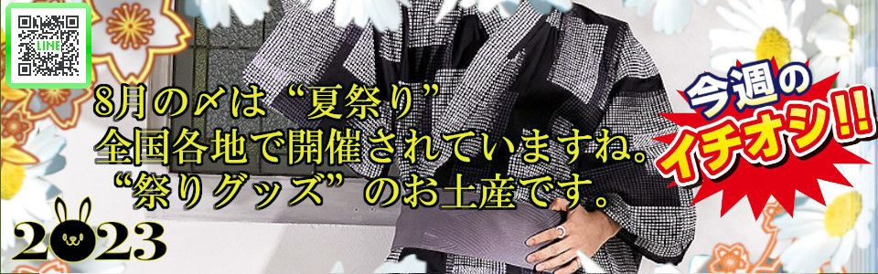 8月27日【日】〜9月2日【土】 ★毎週日曜日更新★毎週季節感味わうプレゼント予定してます。こちらから[ご予約]頂いたお客様にプレゼント。(プレゼントは〆切翌週のお渡しとなります)片手間に時々覗いて見て下さいね。★イチオシ-第87回★8月27日(日)~9月2日(土)8月の〆は“夏祭り”全国各地で開催されていますね。“祭りグッズ”のお土産です。お手にとってご参加下さい。奮ってご参加下さい。★他の企画と併用できませんのでご注意下さい★